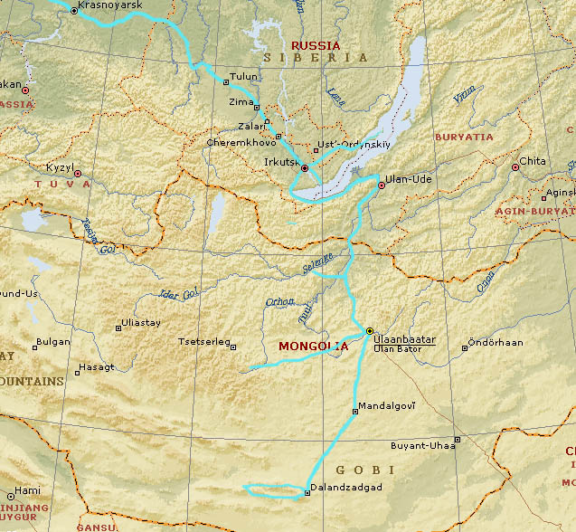 Nasza trasa wyglądała następująco : Brześć - Irkuck - Olchon - Listwianka - Ułan Ude - Kiachta - Suche Bator - Darkhan - Ułan Bator - Dalanzadgad - Karakorum.